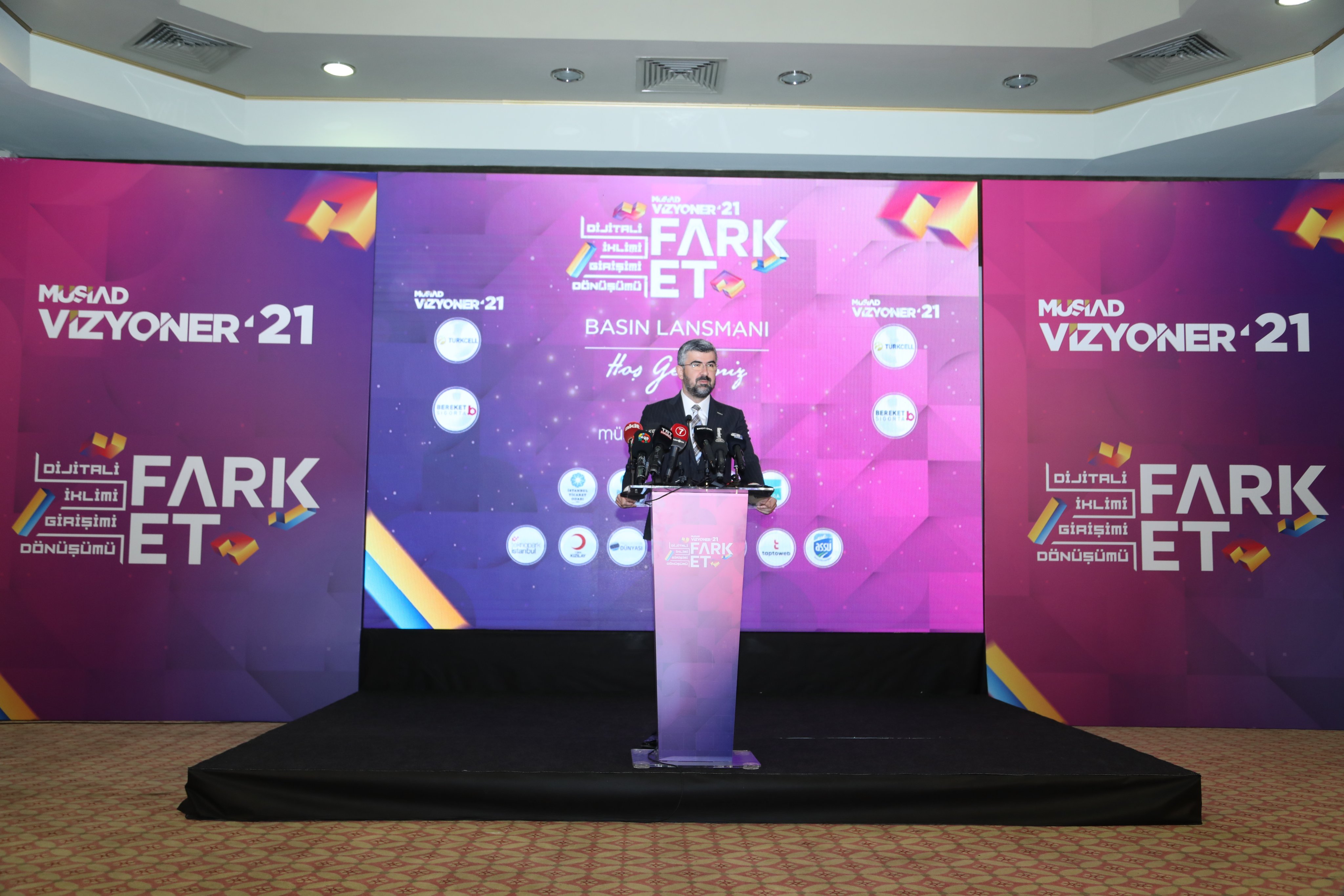 "MÜSİAD Vizyoner olarak bizler de bu iç görüyle 2021 programımızın başlığını 'Fark Et' olarak belirledik. Çünkü her şey fark ederek başlar ve fark etmek geleceği inşa etmek demektir. Unutulmaması gerekir ki gelişen, dönüşen çağ artık her şeyi fark etmemizi istiyor. Ülkeler inovatif farklılıklarıyla öne geçiyor, markalar en farklı pazarlama taktikleri ve dönüşümleriyle müşterilerine ulaşıyor. Aslında bu devirde fark eden başarıyor. Ticarette başarıyor, dijitalde başarıyor, inovasyonda başarıyor, dönüşümde başarıyor, sağlık alanında başarıyor; kısacası fark eden insan yeni kurulan dünya düzeninin başrolünde yerini alıyor. Bizler de MÜSİAD Vizyoner ailesi olarak, ülkemizin küresel arenada başrolde olmasını istiyoruz, bu nedenle de fark et diyoruz."