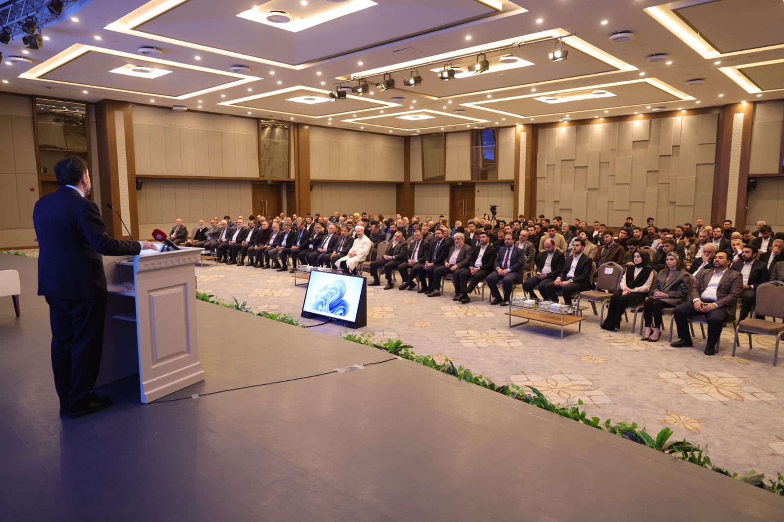 "Yaşadığımız felaket 'Asrın Felaketi' olarak isimlendirilecek kadar büyük ve derin. Elbette bütün ihtiyaçların bir anda karşılanması mümkün olamaz. Elbette büyük bir yardım operasyonu var. Ancak her noktaya aynı etkide ulaşılması mümkün olamayabilir. Burada sabırlı ve anlayışlı davranmak her işin çok daha kolay olmasını sağlayacaktır. Bu konuda yapılacak eleştirilerin belli sınırlar içinde ifade edilmesine dikkat edilmelidir. Orada büyük fedakârlıklarla çalışan hamiyetperver insanların şevkine zarar vermemelidir. O bölgede duran ekonominin çarklarını da biran önce çevirmeye başlayacak destekleri verme gayretinde olunmalıdır. Bunun için geçmiş dönemlerde zaman zaman bu çatı altında gündeme getirdiğimiz ve MÜSİAD’ın da şu an uygulamaya geçirdiği bir kavramı hatırlamamız gerektiğine inanıyorum. O da 'Karz-ı Hasen.' Makinaları ve teçhizatları zarar gören insanlarımızın kayıplarının giderilebilmesi için özellikle karz-ı hasen uygulamalarını gündeme getirmek ve uygulamaya geçirmek şart. Şimdi de deprem bölgesinde üye eşleştirme sistemi ile bölgede zarar gören iş dünyamıza yardımcı oluyorlar. Eldeki ürünleri farklı illerdeki üyelerin tesislerine transfer ederek hem üretimin devamlılığını hem de askıda kalan ticari faaliyetlerin sürdürülebilir hale gelmesini sağlamaya çalışıyorlar. Bu anlamda karz-ı hasen, infâk’ın bir yolu olarak milletimizin hizmetindedir. Biliyoruz ki infâk; helâl yollarla elde edilen malı, ihtiyaca binaen gerekli ve de hoş görülen yerlere harcanması ve sarf edilmesidir. Aynı zamanda, herhangi bir karşılık beklemeden sadece Cenab-ı Hakk’ın rızasını murad etmek için yapma duygusunu da taşımalıdır. Rasülullah Efendimiz aleyhisselatu vesselam’ın hadislerinde de her çeşidiyle "infak"ın önemle tavsiye edildiğini görüyoruz. Bunun yarım hurma ile de olsa yapılması gerektiğini, böylece rızkın çoğalacağını, ömrü ve malı artıracağını, varsa gazabı dindireceğini ve zaferlere sebep olacağını müjdeliyor. Allah’ın izniyle bir hafta sonra erişeceğimiz Ramazan-ı Şerif’in infak etmek için çok önemli bir fırsat olduğunu da biliyoruz."
