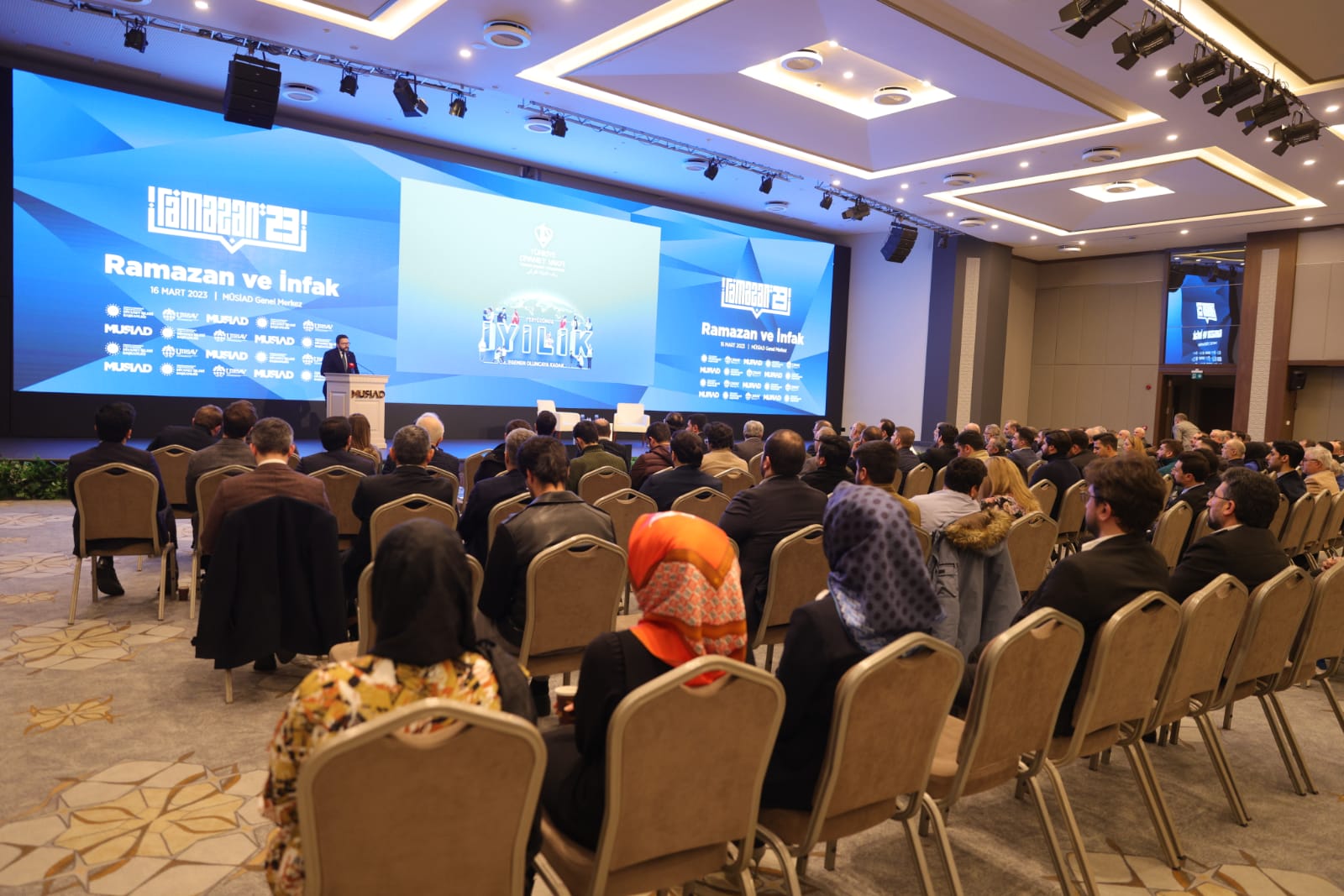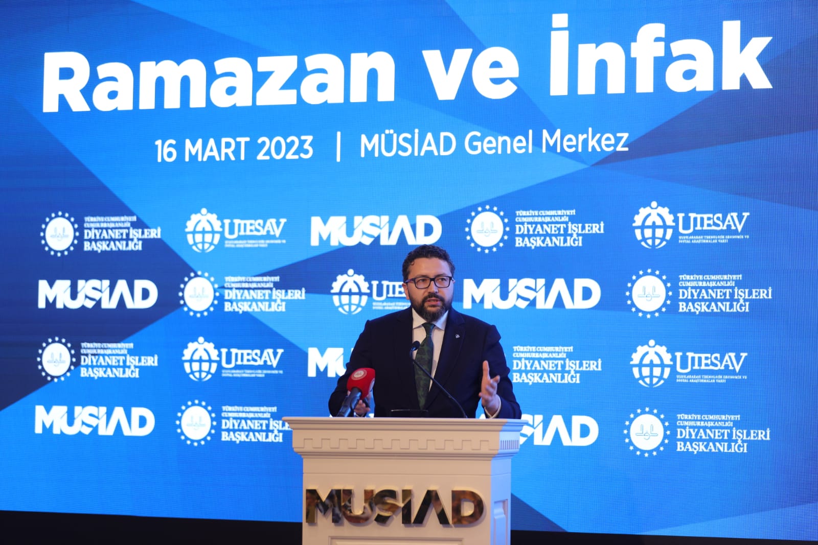 Müstakil Sanayici ve İşadamları Derneği (MÜSİAD) ve Uluslararası Teknolojik, Ekonomik ve Sosyal Araştırmalar Vakfı (UTESAV) tarafından düzenlenen "Ramazan ve İnfak" programı, MÜSİAD Genel Başkanı Mahmut Asmalı, Diyanet İşleri Başkanı Prof. Dr. Ali Erbaş, Diyanet İşleri Başkanlığı Din Hizmetleri Genel Müdürü Dr. Şaban Kondi, Türkiye Diyanet Vakfı Genel Müdürü İzani Turan, İstanbul İl Müftüsü Prof. Dr. Safi Arpaguş ve MÜSİAD üyelerinin katılımıyla gerçekleştirildi.