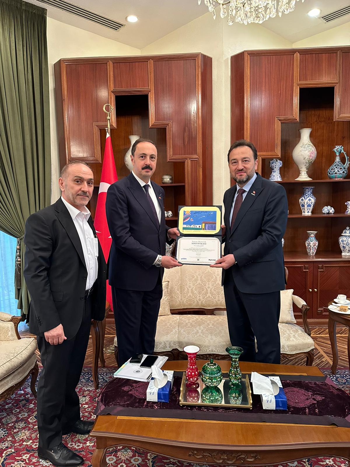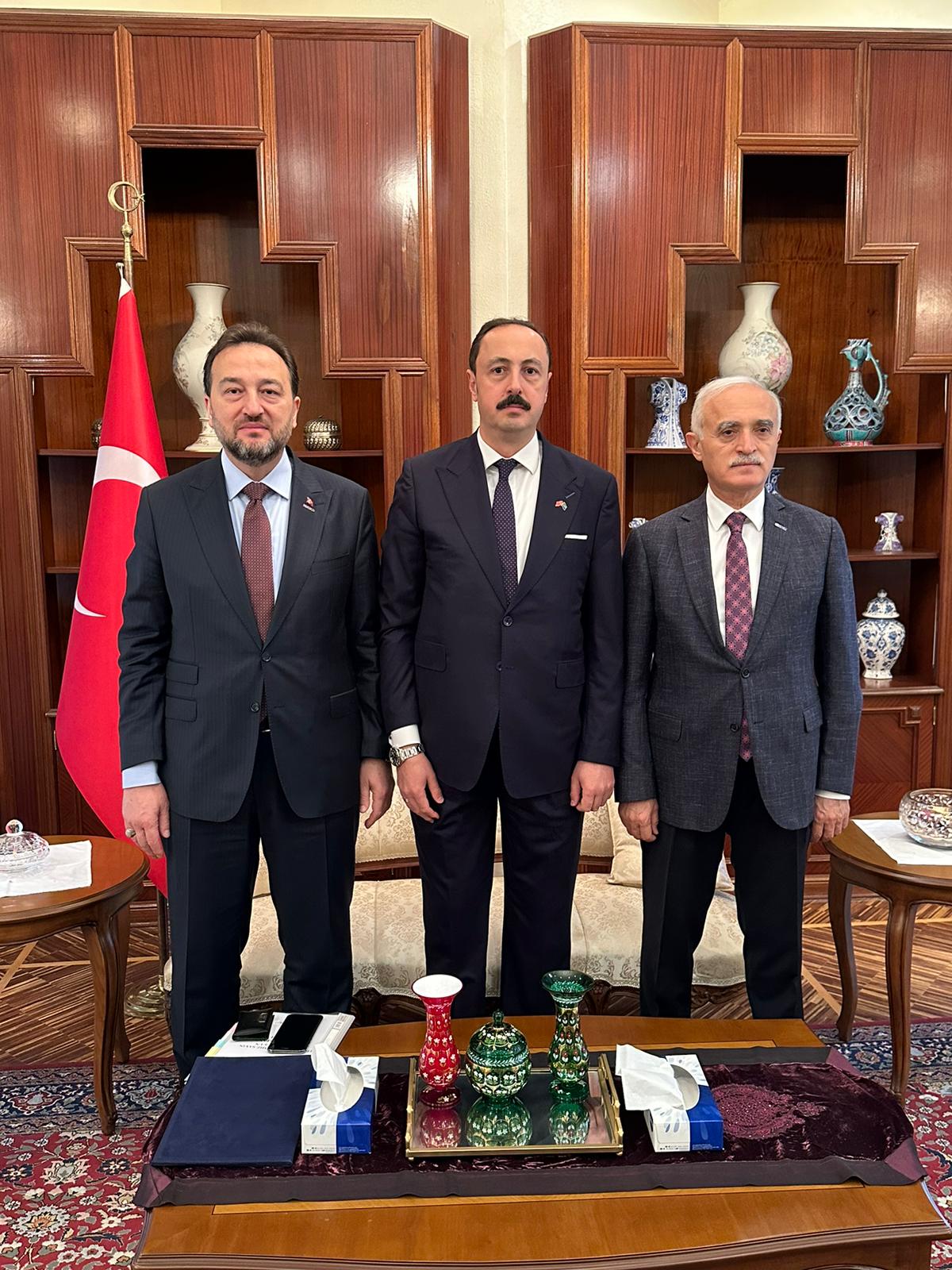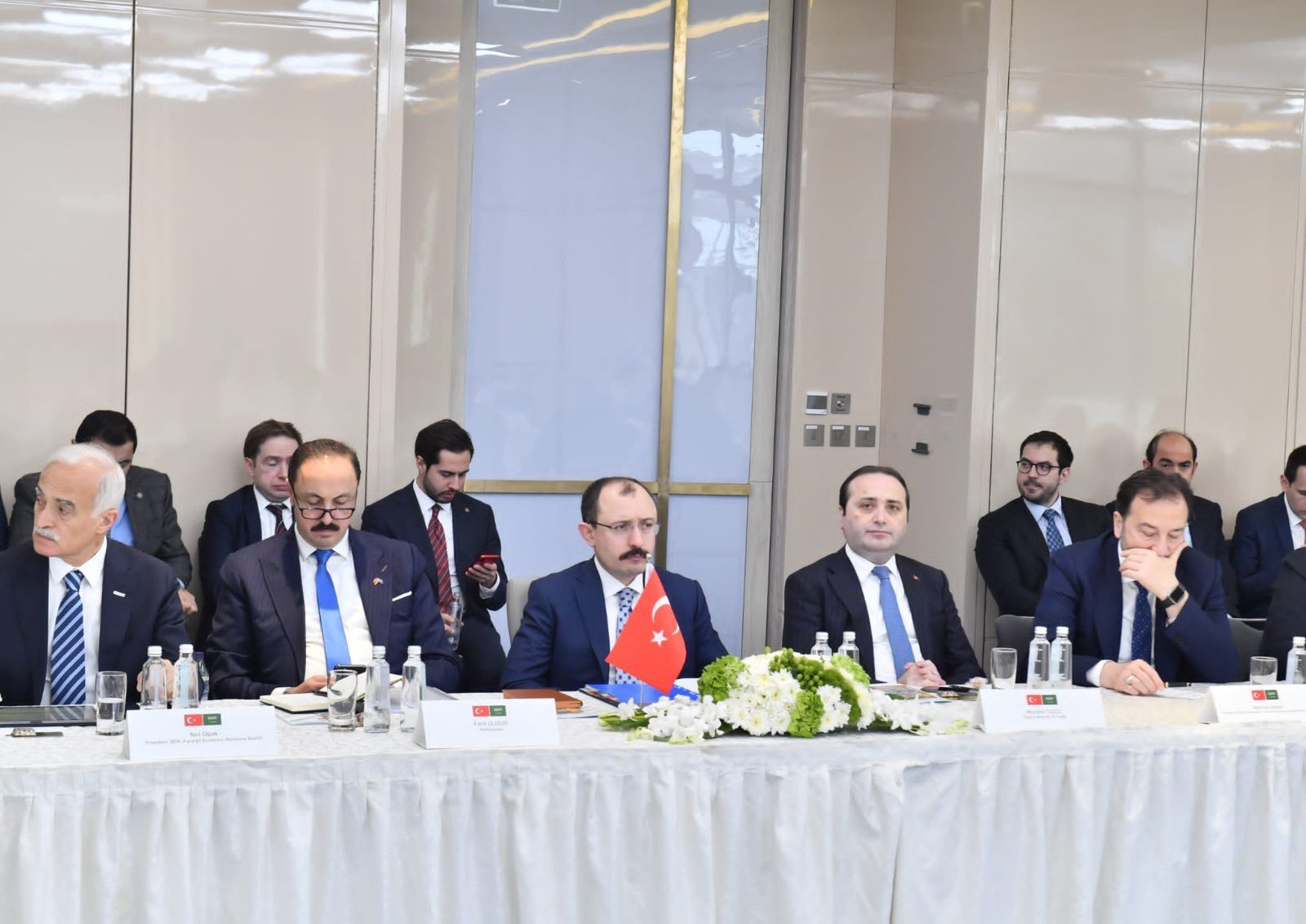 Suudi Arabistan İş Programının Riyad ayağında, MÜSİAD Genel Başkanı Mahmut Asmalı ve Dış Ekonomik İlişkiler Kurulu Başkanı (DEİK) Başkanı Nail Olpak, Türkiye'nin Riyad Büyükelçisi Fatih Ulusoy ve ile bir araya gelerek, iki ülke ticari ilişkileri ve bölgedeki ticaret yaşamına yönelik istişarelerde bulundu.