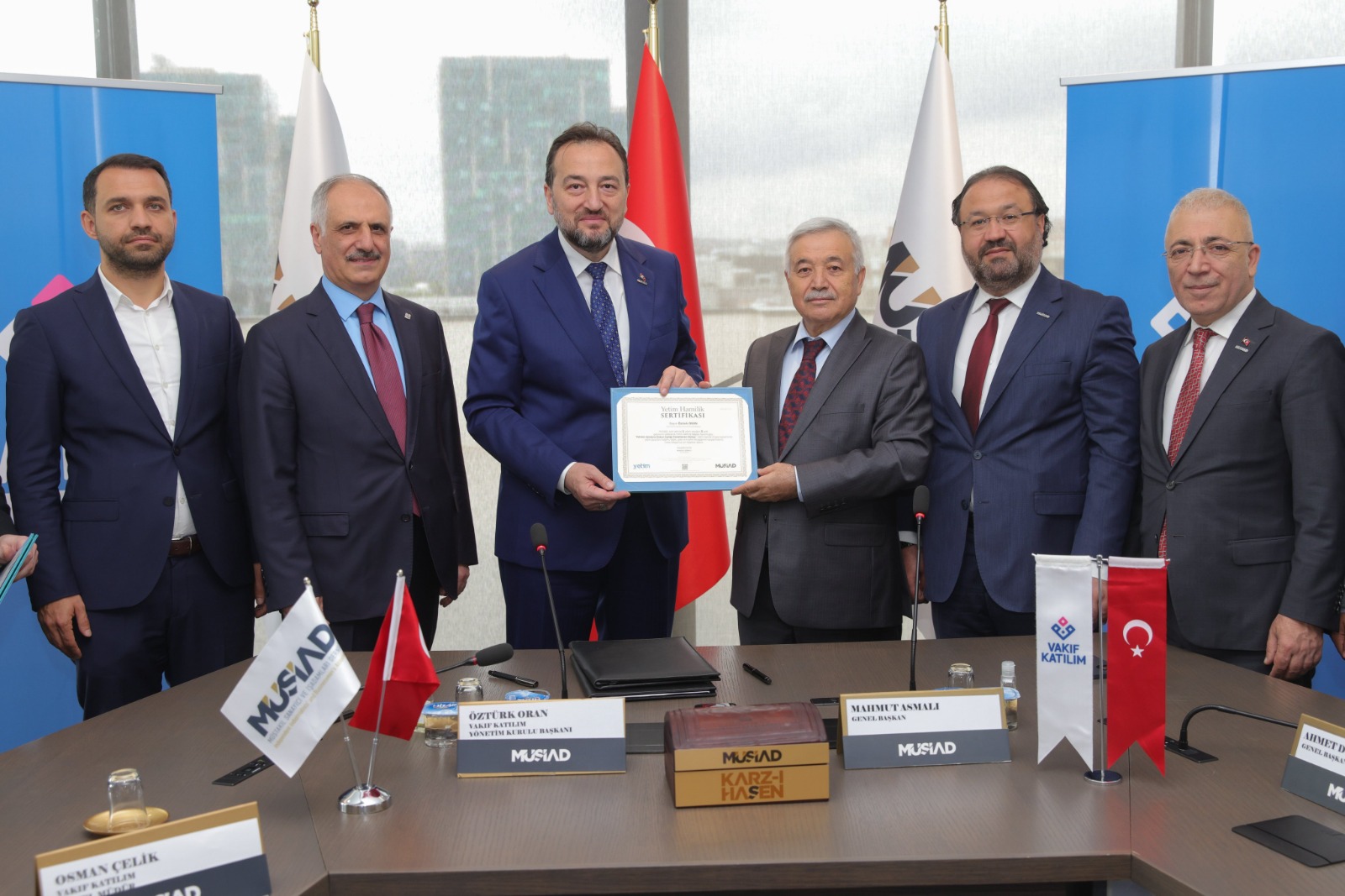 Müstakil Sanayici ve İşadamları Derneği (MÜSİAD) ve Vakıf Katılım, afetten etkilenen bölgelere yönelik çalışmalarına devam ediyor. Bu çerçevede Karz-ı Hasen İş Birliği Protokolü İmza Programı, MÜSİAD Genel Başkanı Mahmut Asmalı, Vakıf Katılım Yönetim Kurulu Başkanı Öztürk Oran, Vakıf Katılım Genel Müdürü Osman Çelik, MÜSİAD Karz-ı Hasen Sandığı Başkanı Muhammet Ali Özeken ve MÜSİAD Yönetim Kurulu Üyeleri'nin katılımıyla MÜSİAD Genel Merkezinde gerçekleştirildi. Taraflar arasında imzalanan iş birliği protokolü kapsamında deprem bölgesinde iş yerleri, ticari süreçleri zarar gören MÜSİAD üyelerine yönelik vade farksız ve komisyonsuz Karz-ı Hasen finansmanı desteği sağlanacağı bildirildi.