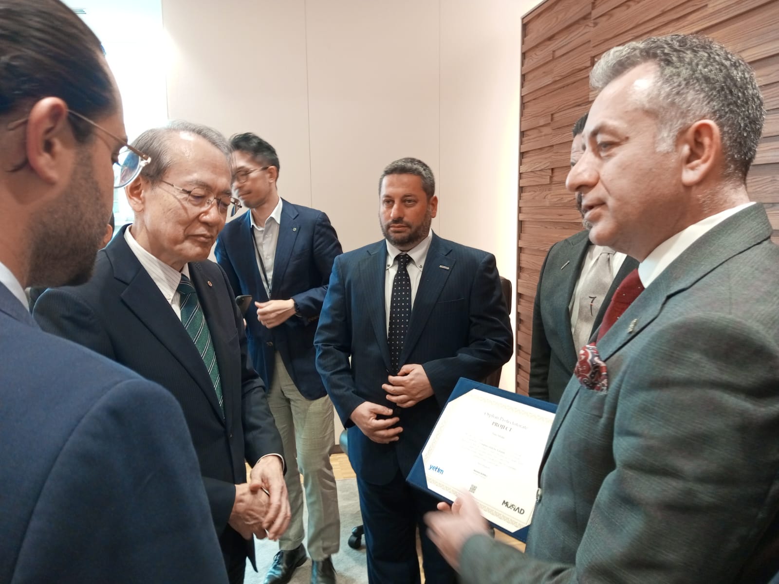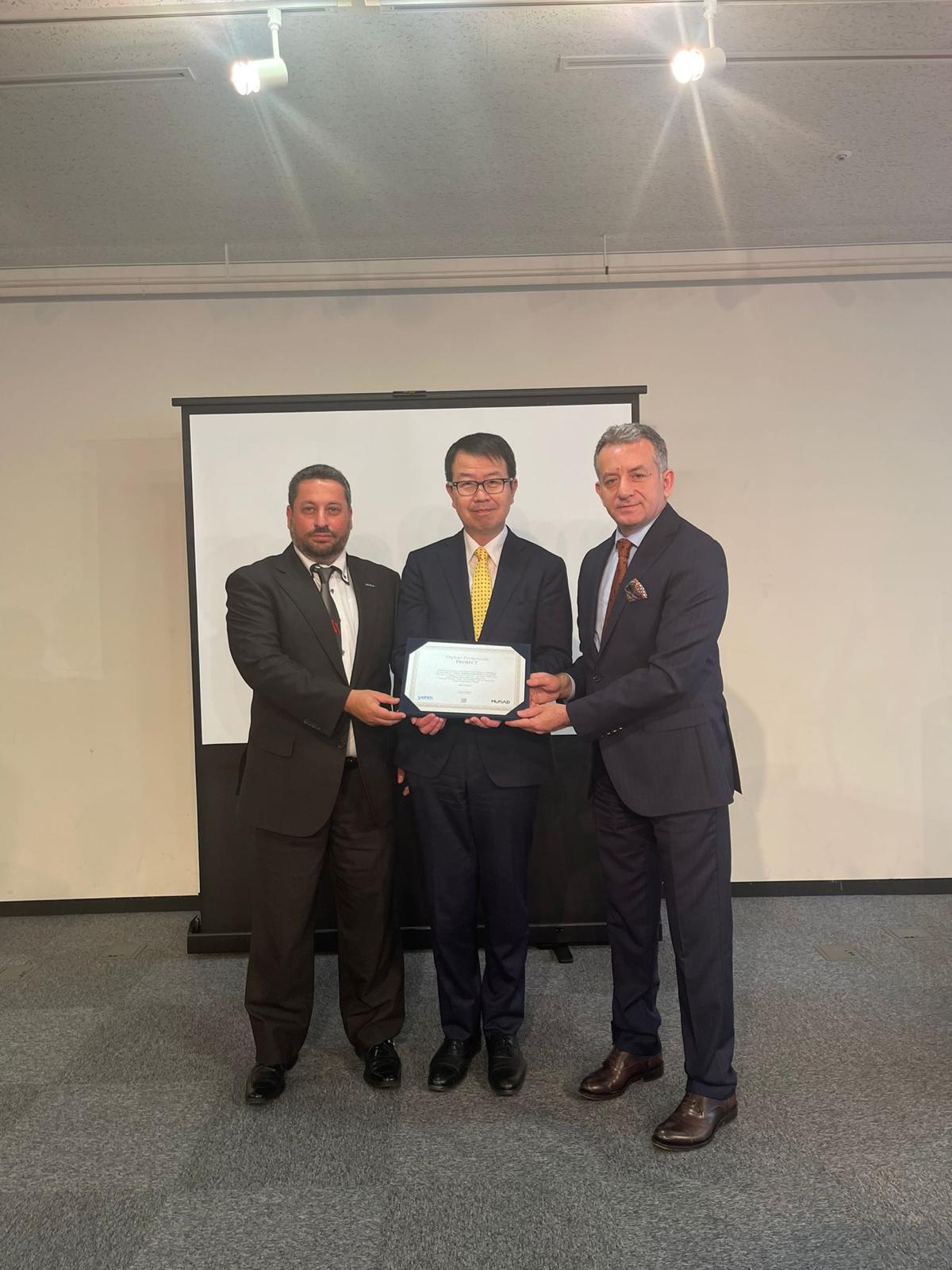 Yoğun katılımla gerçekleştirilen Türkiye-Japonya İş Geliştirme Toplantısı ve B2B Programı sonunda Japonya Dış Ticaret Örgütü yetkililerine Yetim Hamilik Sertifikası takdim edilerek, projeye ilişkin bilgi paylaşımında bulunuldu.