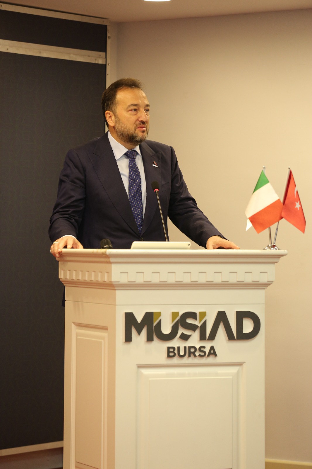 MÜSİAD Bursa Şubesi Yönetim Kurulu Başkanı Alparslan Şenocak, “Bursa’mız, İtalya ile ticari ilişkiler bağlamında çok önemli bir role sahip. Şehrimizden İtalya'ya ihracat yapan 511 firmanın yanı sıra yine şehrimizde faaliyet gösteren 38 İtalyan sermayeli firma mevcut. 2021’de Bursa'dan İtalya'ya 122 milyon dolar tutarında gerçekleştirilen ihracat, şehrimizi bu kategoride İstanbul’un ardından ikinci sıraya taşımıştır. Bu tablo; Bursa'nın üretim ve ihracat kabiliyetinin hem ulusal, hem de uluslararası arenada ekonomik anlamda ne kadar canlı olduğunu göstermektedir. İş dünyamızı Türkiye ile İtalya arasındaki güçlü iş birliğinin daha da derinleşmesine katkıda bulunmaya davet ediyorum. İnanıyorum ki, MÜSİAD Bursa’da oluşturduğumuz sinerji, çok önemli kazanımları beraberinde getirecektir.” dedi.