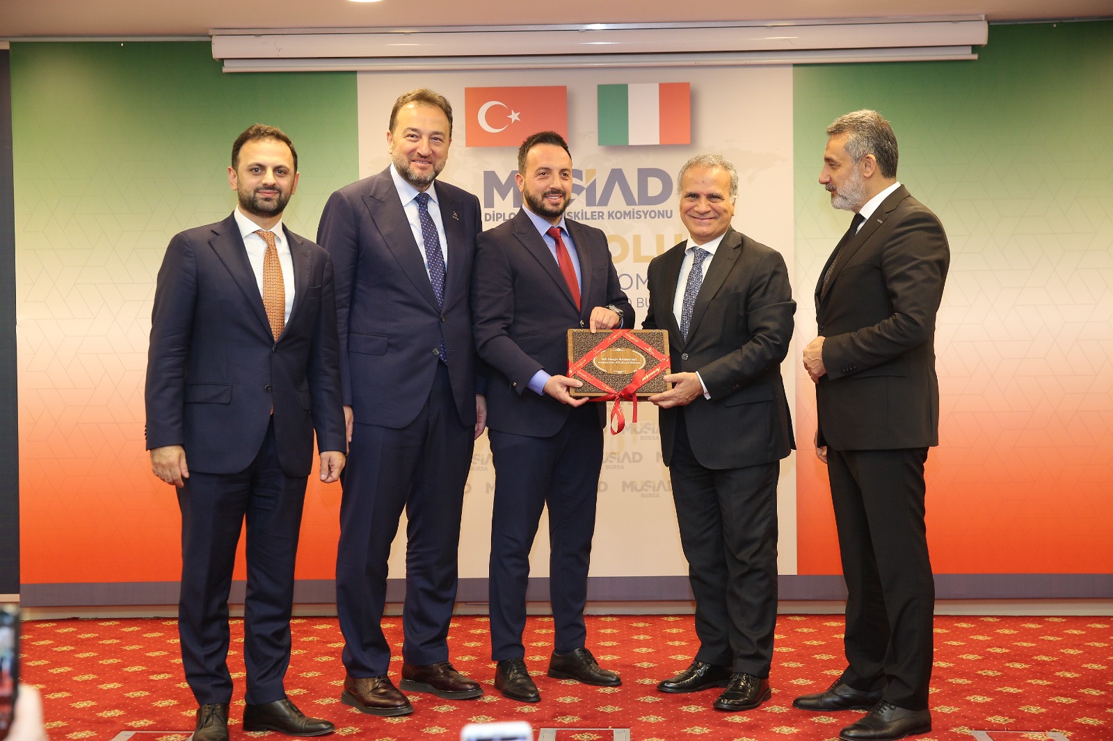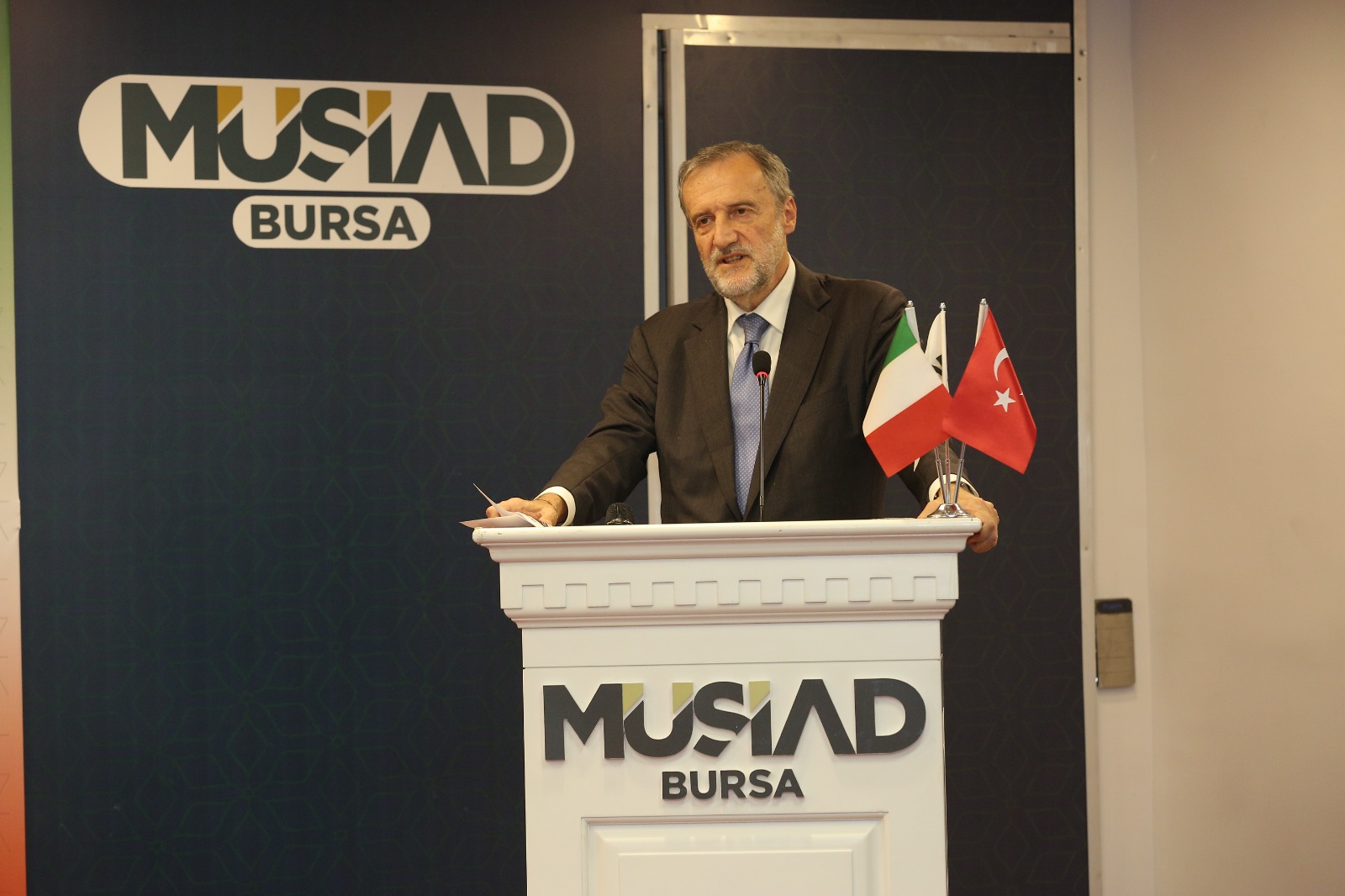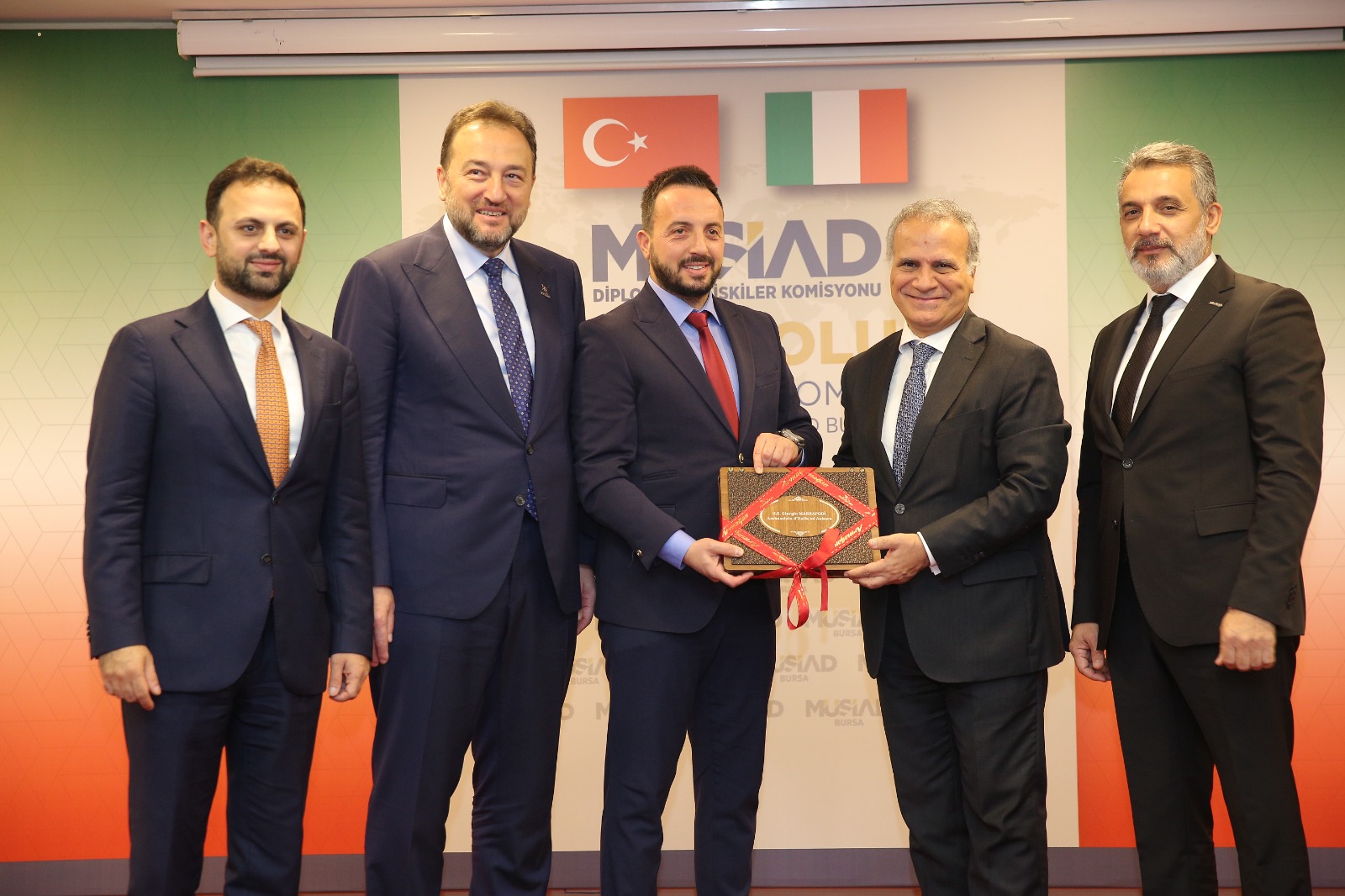 Müstakil Sanayici ve İş Adamları Derneği (MÜSİAD) Bursa Şubesinde, MÜSİAD Genel Merkez Diplomatik İlişkiler Komisyonu koordinasyonunda Anadolu Ekonomi Diplomasisi Programı düzenlendi. MÜSİAD Genel Başkanı Mahmut Asmalı’nın da katıldığı programda İtalya Büyükelçisi Giorgio Marrapodi ağırlandı. Etkinlikte İtalya’daki iş ve yatırım fırsatlarının sunuldu.