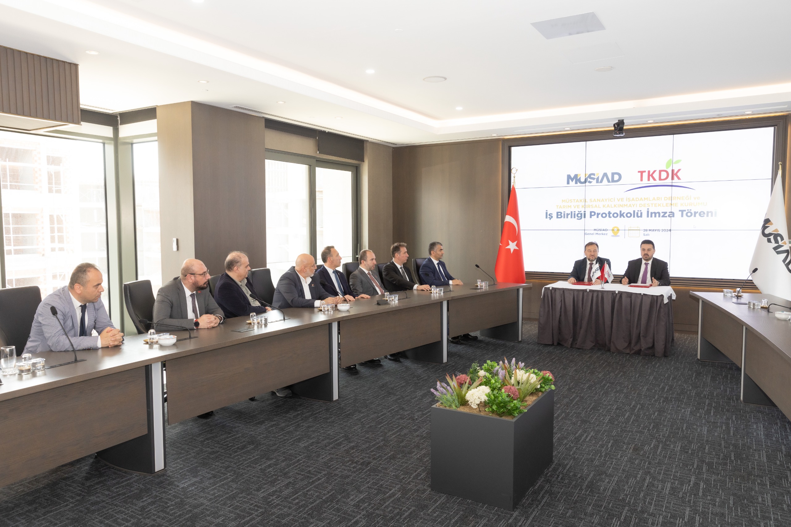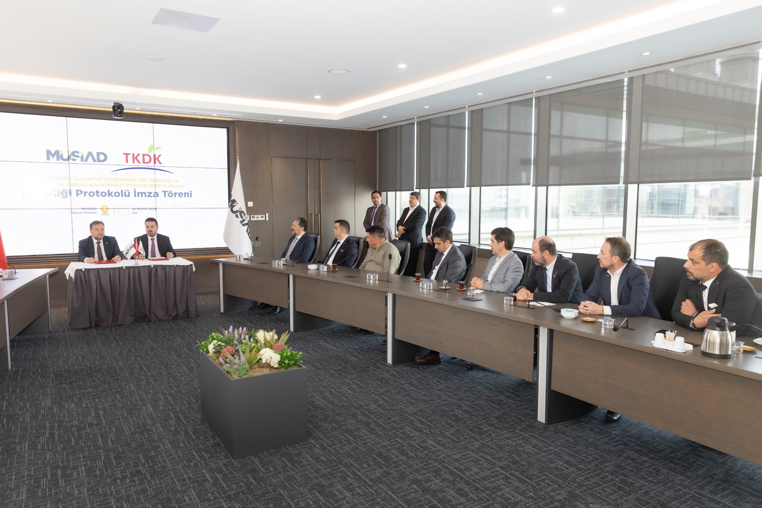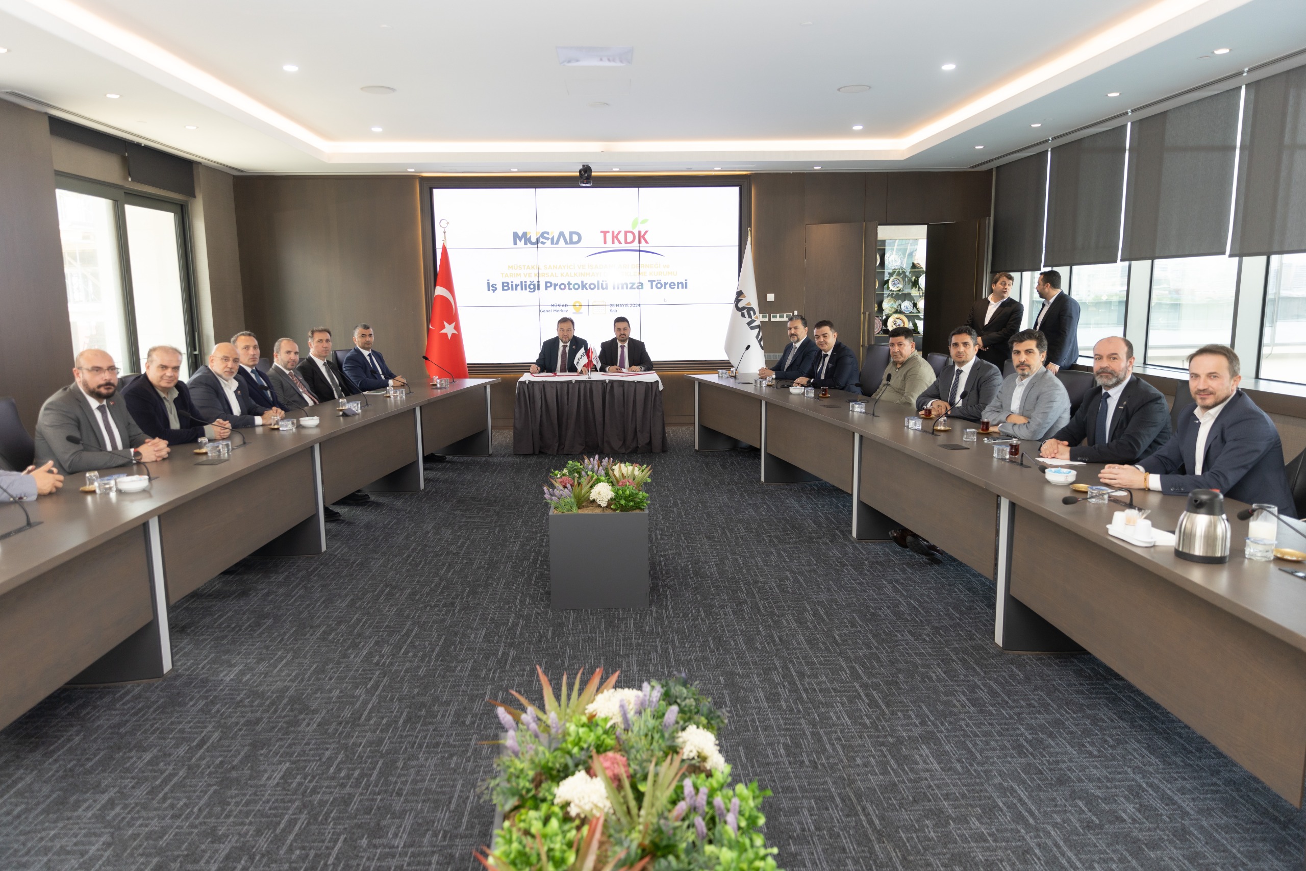 MÜSİAD ve TKDK arasında AB Projelerini ve kırsal kalkınmayı teşvik eden, MÜSİAD Üyelerini IPARD Destekleri konusunda bilgilendirmeye yarayan iş birliği protokolü imza töreni MÜSİAD Genel Merkezi’nde gerçekleşti. Gerçekleşen törene MÜSİAD Genel Başkanı Mahmut Asmalı ve TKDK Başkan V. Ahmet Abdullah Antalyalı’nın yanı sıra MÜSİAD Yönetim Kurulu Üyeleri ve TKDK Heyeti katılım sağladı.