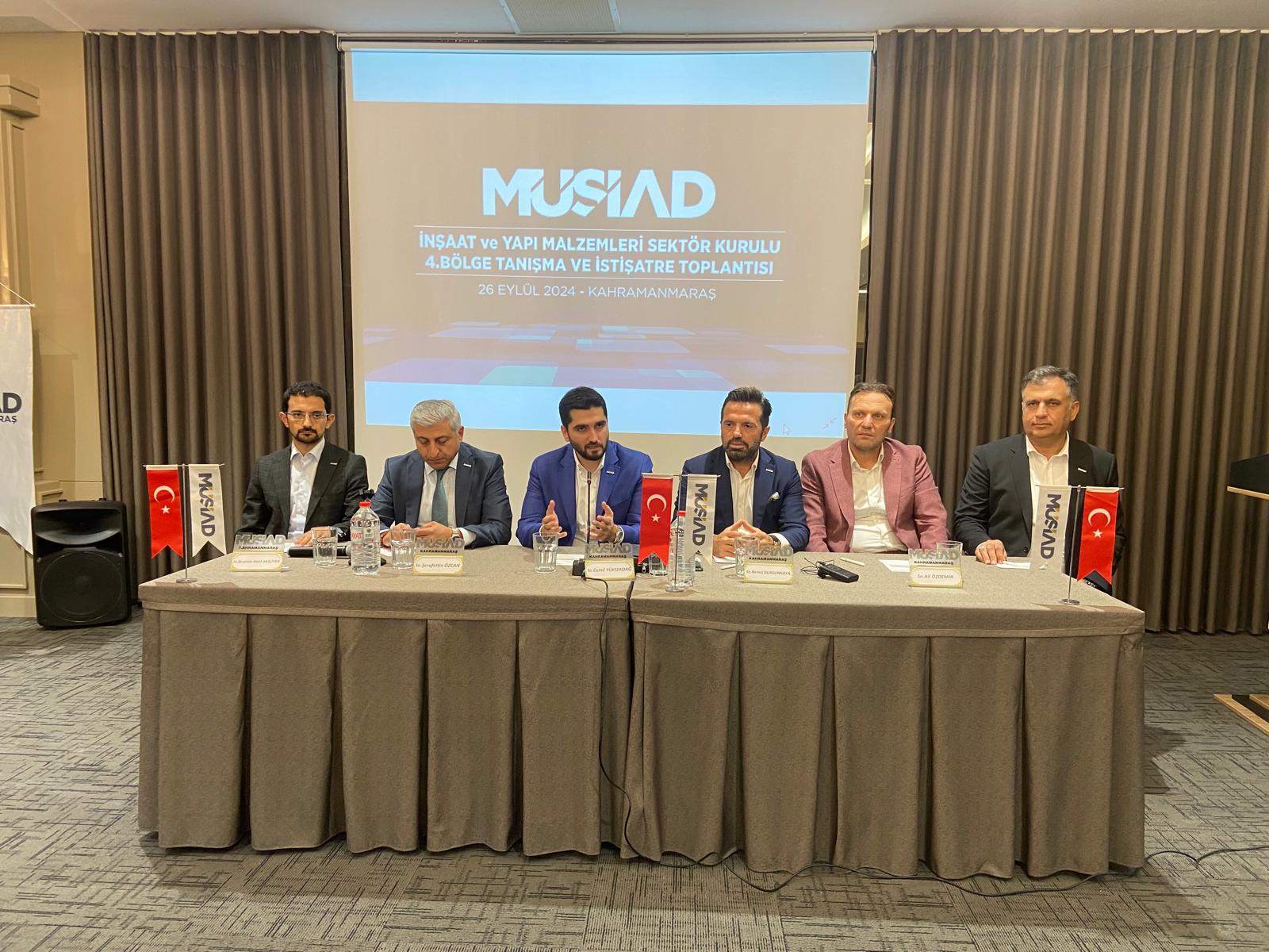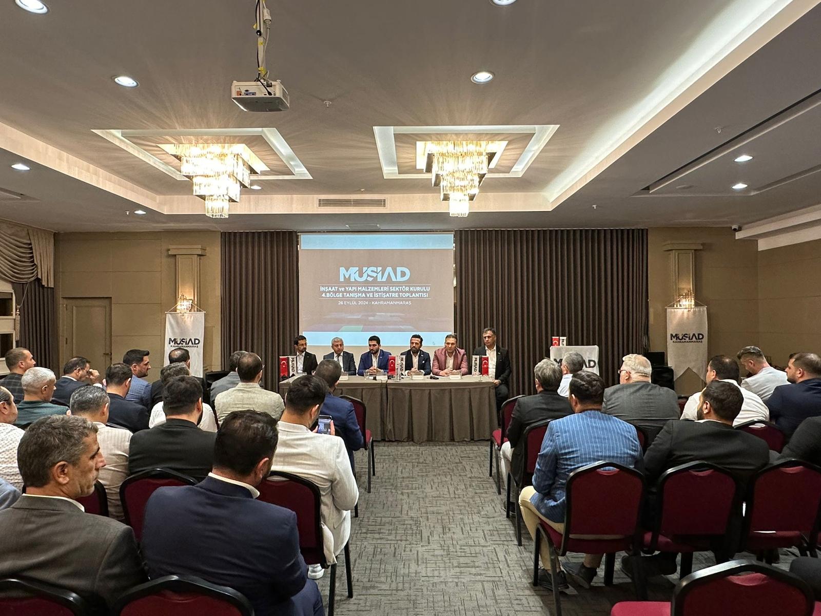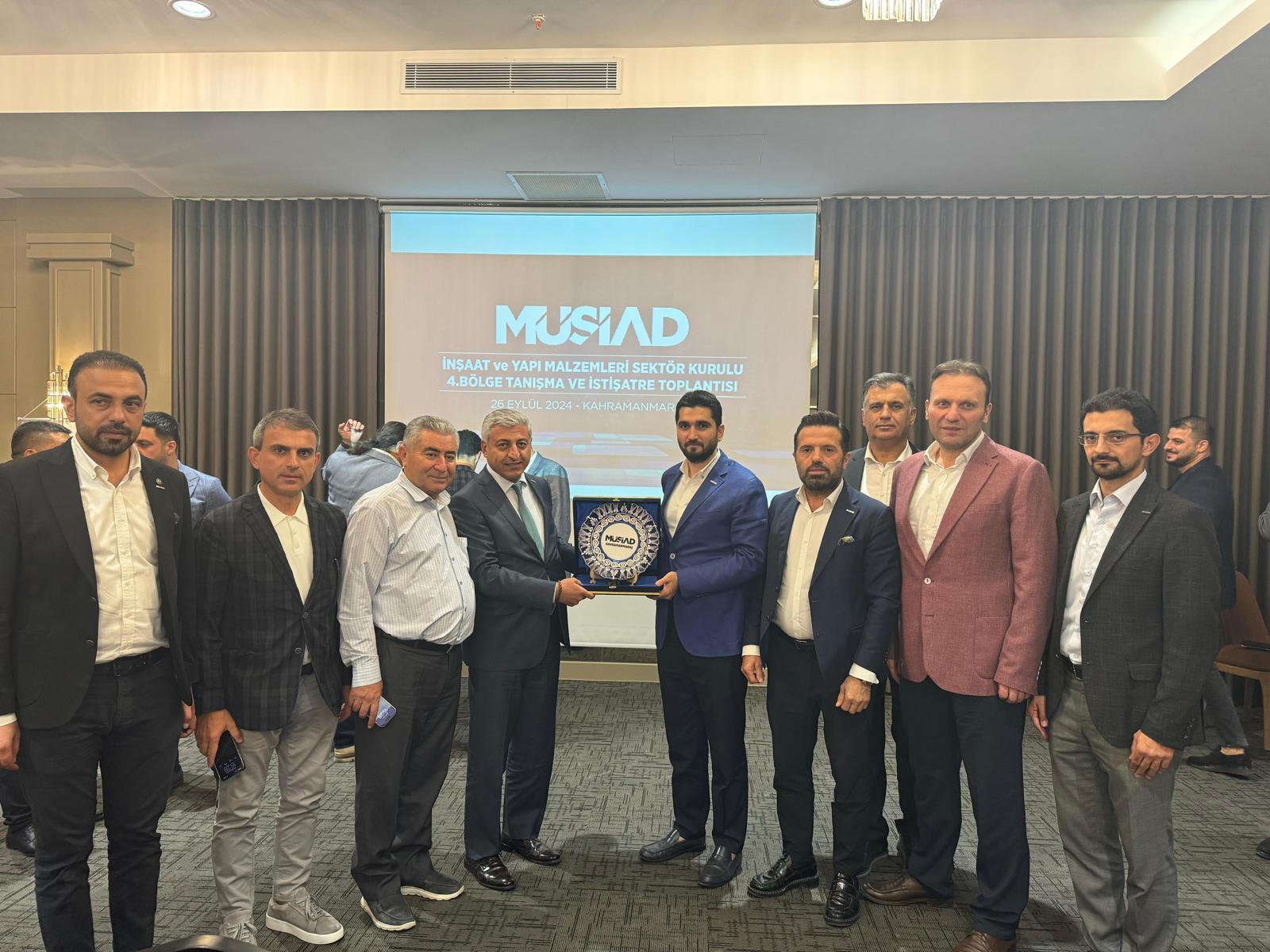 MÜSİAD İnşaat ve Yapı Malzemeleri Sektör Kurulu Başkanı Cemil Yüksekdağ ve beraberindeki sektör kurulu üyelerinden oluşan heyet tarafından MÜSİAD Kahramanmaraş şubesi ev sahipliğinde düzenlenen toplantıda bölge üyeleri ile tanışma ve istişare gerçekleştirildi. Sektörün bölgedeki durumu, sektörün güncel durumu, sektörel problemler ve çözüm önerileri gibi konular üzerine istişarelerde bulunuldu.