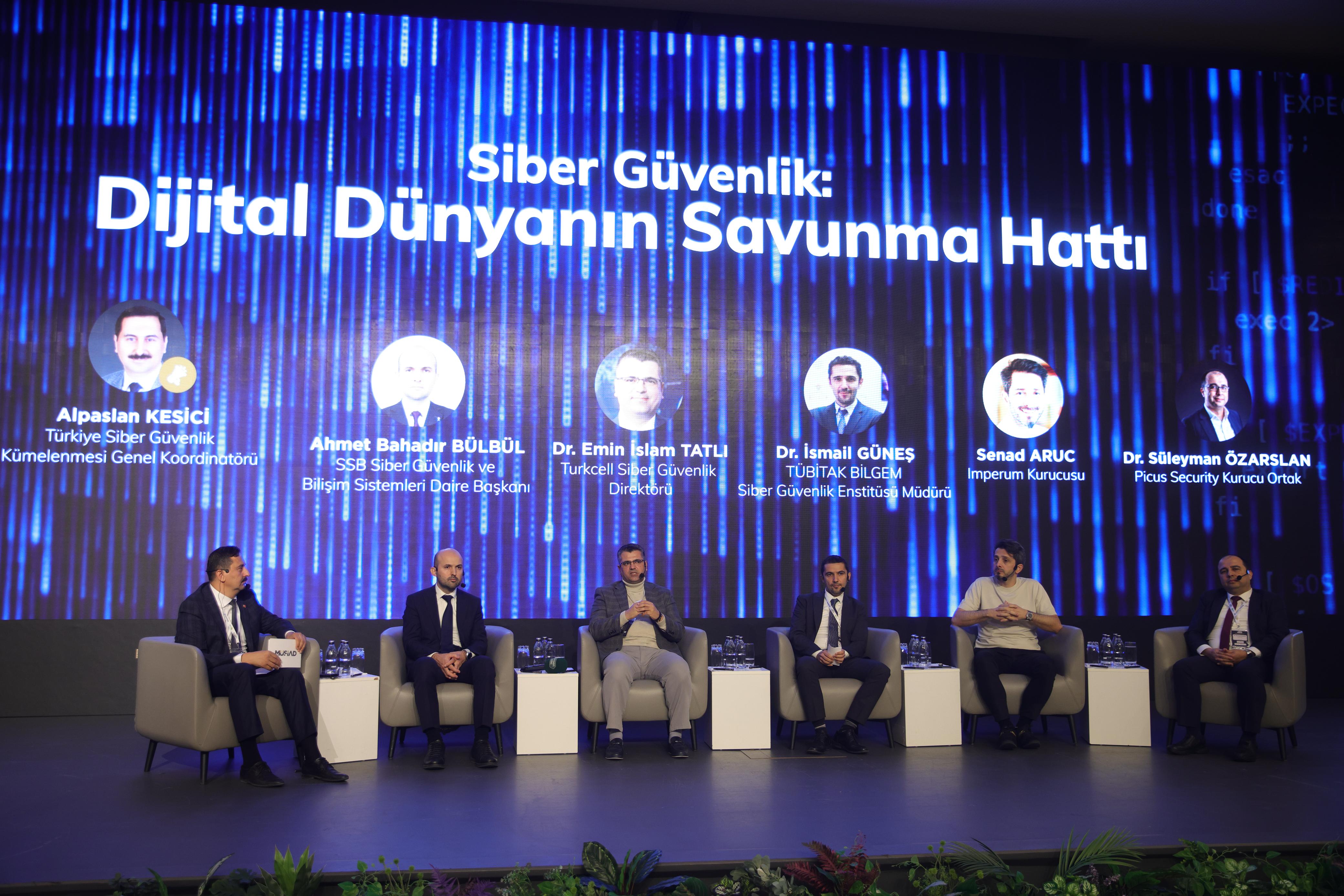 MÜSİAD Siber Güç Türkiye’24 Zirvesi’nde girişimci sunumlarının yanı sıra iki farklı oturum gerçekleşti. İlk oturum olan Dijital Dünyanın Savunma Hattı oturumunda siber güvenlik ve yazılım konuları konuşuldu. Türkiye Siber Güvenlik Kümelenmesi Genel Koordinatörü Alpaslan Kesici’nin moderatörlüğünde, Savunma Sanayii Başkanlığı Siber Güvenlik ve Bilişim Sistemleri Daire Başkanı Ahmet Bahadır Bülbül, Turkcell Siber Güvenlik Direktörü Dr. Emin İslam Tatlı, TÜBİTAK BİLGEM Siber Güvenlik Enstitüsü Müdürü Dr. İsmail Güneş, Imperum Kurucusu Senad Aruc ve Picus Security Kurucu Ortağı Dr. Süleyman Özarslan konuşmalarını gerçekleştirdi.