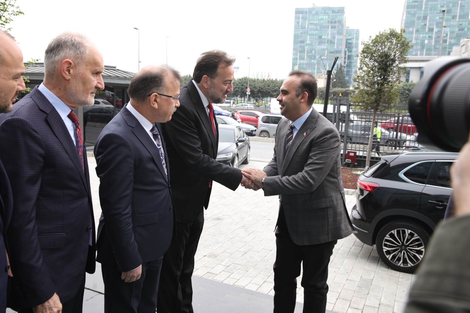 Bakan Kacır'a konuÅŸmasının ardından hediye takdim edildi ve aile fotoÄŸrafı çekildi.